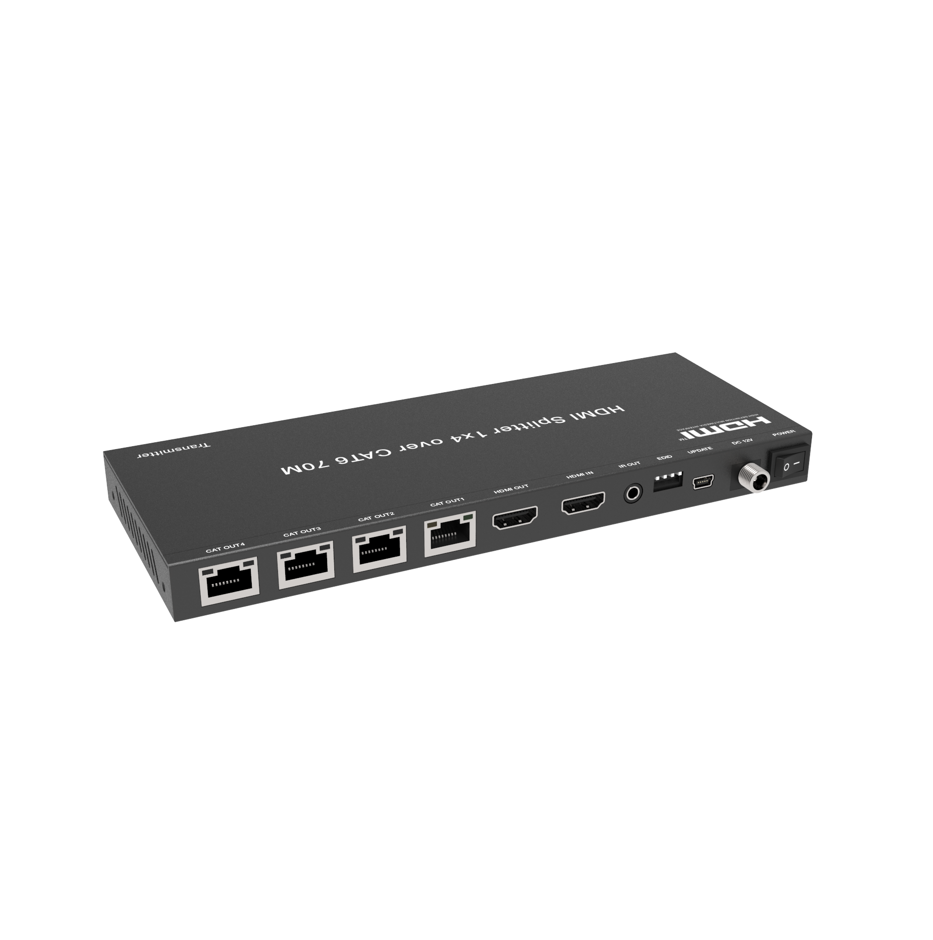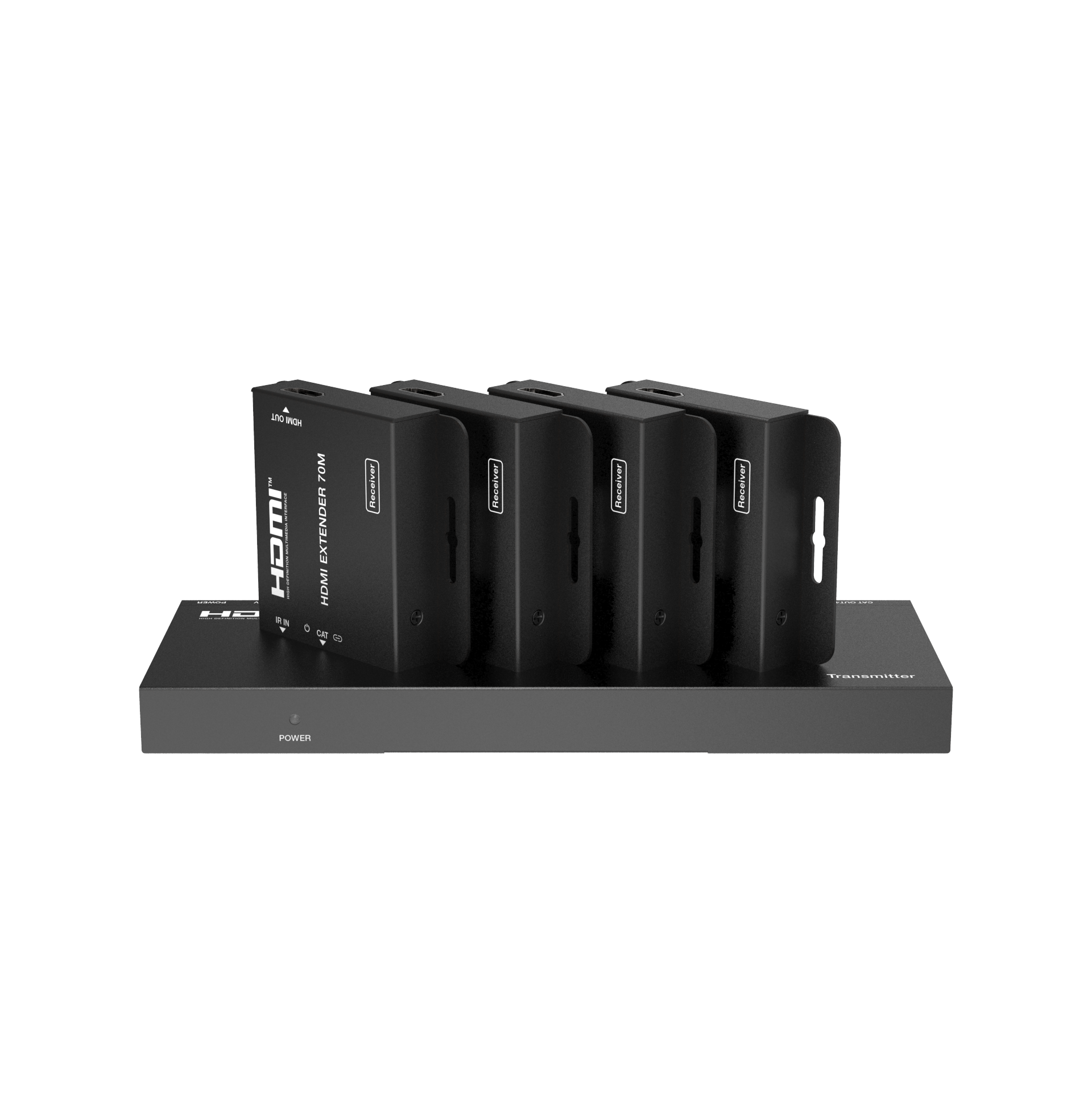 اسپليتر HDMI انتقال روی کابل شبکه فرانت یک سیگنال HDMI را به سیگنال های جداگانه (1 محلی، چند سیگنال کنترل از راه دور) تقسیم میکند و یک سیگنال 1080p (60 هرتز) را با استفاده از کابل CAT5e/6 به (چند) مانیتور تا فاصله 50 متر منتقل میکند. اسپلیتر HDMI به منبع ویدیو اجازه می دهد تا در یک مکان امن و از راه دور برای دسترسی کنترل شده قرار گیرد و در عین حال سیگنال را به دستگاه های مکان های دیگر ارسال کند. گیرنده ها برق را از واحد پایه از طریق همان کابل CAT5e/6 (PoE) دریافت می کنند، این امر نیاز به یک برق اضافی در هر گیرنده را از بین می برد.
