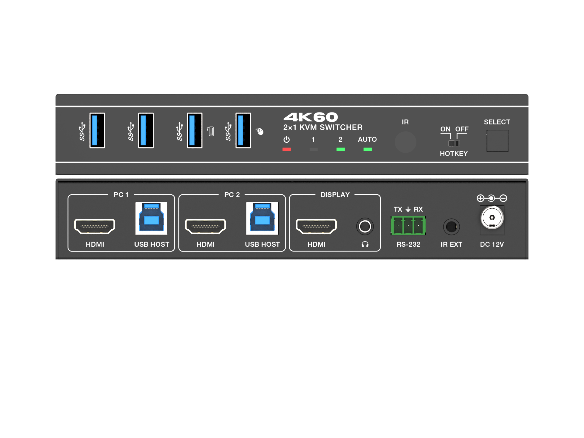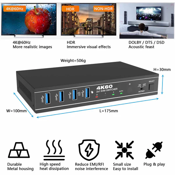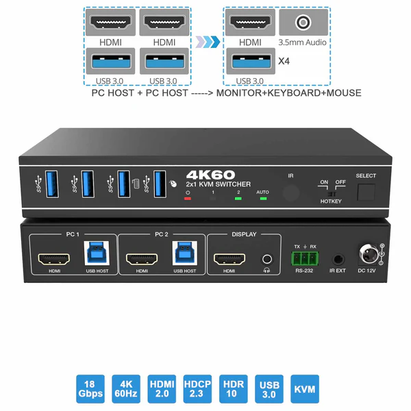 KVM سوئیچ 2 پورت HDMI/USB3.0 با کیفیت 4K@60Hz فرانت